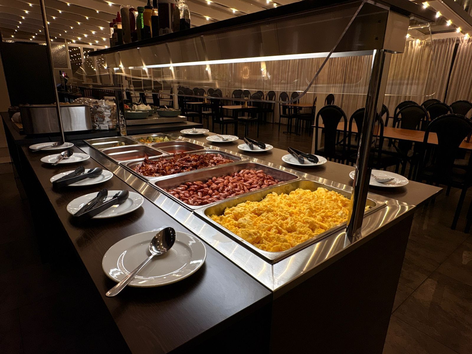 Morgunverðarhlaðborðið er alltaf innifalið í gistingu hjá okkur. Þar má finna úrval af morgunkorni, jógúrt, brauði, ávöxtum og grænmeti.